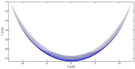 Figure 4 reports as example, a MATLAB plot of reachable area by single leg. The work area has been defined by referring the end-point p, by considering 0° < θ1 < 30°, −30° < θ2 < 0°, l1 = l2 = 70 mm D = 66 mm.