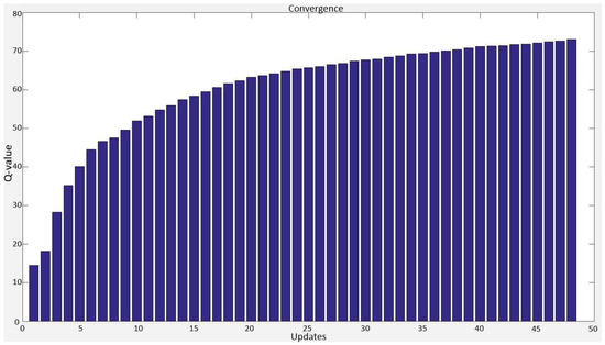 In general, RL might require tens of thousands of iterations before converging. As an example, Mitchell et al. [35] showed that the Tesauro’s TD-GAMMON needed 1.5 million of backgammon games iterations before it converged. It has been proven that the RL converges faster by reducing the learning rate during the learning process. The choice of in this work as in Equation (3), is proven by Watkins and Dayan [41] to meet the convergence conditions. In this paper we propose to stop the training when a criterion based on the expected return of the selected actions is satisfied.