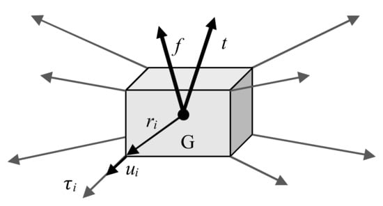 As schematically shown in Figure 1, vectors and are respectively the unit vector running along the ith cable, (oriented from the moving platform, that is, the box painted in grey in the scheme, towards the ith cable output point on the fixed frame) and the vector from the centre of mass (G) of the moving platform to the point where the ith cable is connected to the moving platform.