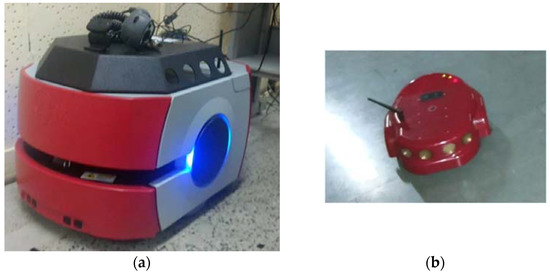(a) Pioneer LX robot used for performing mapping; (b) Amigobot robot used for demonstration of robot chains.
