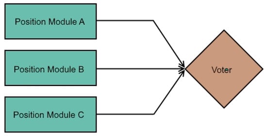 Both in [10] and [12] we can find compilations of some developments in fault diagnosis. Through analysis of these works, it becomes evident that some techniques are not feasible for integration in mobile robots or that their full application can become impractical, either because of high amounts of processing power or because they are valid during design only. Tools like FMECA (Failure Mode, Effects and Criticality Analysis) and Fault Trees involve the creation of, respectively, tables and graphics to list faults, their causes and consequences, and both descriptions mention the designer of the system. Detection methods were mostly model-based, which may not be easy to create for already existing systems. Diagnosis incurred in probabilistic methods, artificial neural network or fuzzy clustering. Tolerance was mainly based on hardware redundancy, both by the usage of component multiplication or through the increase of the needed degrees of freedom. Despite some obvious potential problems presented by these techniques, more recent approaches maintain the trend. Isermann (2008), when approaching mechatronic systems [13], once again mentions the importance of model-based methods for fault detection and diagnosis. He also refers to the FMEA and fault-tree analysis as essential tools that must be used in the design stage to compensate the lower reliability of electronics, but that the fault-tolerance itself will usually require the usage of hardware redundancy. An area where safety is essential, like aeronautics, also references redundancy, both hardware and software, as techniques essential for their flight control systems [14]. Generic solutions towards improvements to fault tolerance can be seen that also end up adding to the fault detection field, as the former usually needs the latter to happen. An approach based on sensor-actuation channel switching and dwell time is a good example of this since; even though it is a detailed explanation of the mathematical model that provides the tolerant scheme, it first presents a detective mechanism [15]. Another example, albeit less obvious, can be seen on an approach to state synchronization after a partial reconfiguration of fault tolerant systems using Field Programmable Gate Array (FPGA) circuits. Even when discussing the fault tolerance method of Triple Modular Redundancy (TMR), method illustrated in Figure 1, it is mentioned that the reconfiguration only occurs after the fault is detected by the failure of one of the redundant circuits [16].