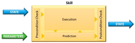- Skills as intuitive object-centered robot abilities that are self-sustained and can be used for task-level programming. Each skill has input parameters, executing instructions (combinations of primitives: sensing and acting operation sequences) and it is able to verify if the execution of the program was successful (or not).