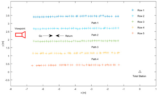 - Paraforos, D.S.; Reutemann, M.; Sharipov, G.; Werner, R.; Griepentrog, H.W. Total station data assessment using an industrial robotic arm for dynamic 3D in-field positioning with sub-centimetre accuracy. Comput. Electron. Agric. 2017, 136, 166–175. [Google Scholar] [CrossRef]