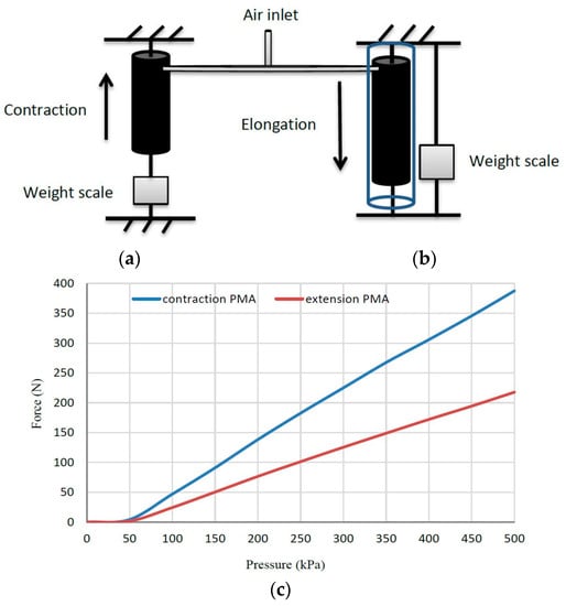 - Al-Ibadi, A.; Nefti-Meziani, S.; Davis, S. Efficient structure-based models for the McKibben contraction pneumatic muscle actuator: the full description of the behaviour of the contraction PMA. Actuators 2017, 6, 32. [Google Scholar] [CrossRef]