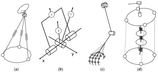 - Russo, M.; Ceccarelli, M. Kinematic design of a tripod parallel mechanism for robotic legs. In Mechanisms, Transmissions and Applications; Mechanism and Machine Science; Springer: Cham, Switzerland, 2018; Volume 52, pp. 121–130. [Google Scholar]