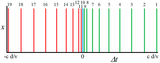 The simulated data in Table 1 are computed for nineteen lambda circles (Figure 3) corresponding to acoustic sources identified with peaks in the CCF shown schematically in Figure 2. Delay time data are computed for antennae disposed at the ends of a line (Equation (3)) and for antennae disposed to the sides of a spherical head (Equation (8)) ( = 343 m/s, = 0.15 m).