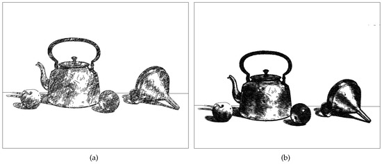 Still Life with Tea Kettle, final artworks. (a) Cross-hatching. (b) Random Splines.