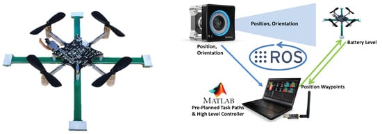 - Preiss, J.A.; Hönig, W.; Sukhatme, G.S.; Ayanian, N. Crazyswarm: A Large Nano-Quadcopter Swarm. In Proceedings of the IEEE International Conference on Robotics and Automation (ICRA), Singapore, 29 May–3 June 2017; pp. 3299–3304. [Google Scholar]