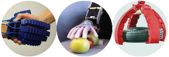 - Mutlu, R.; Tawk, C.; Alici, G.; Sariyildiz, E. A 3D printed monolithic soft gripper with adjustable stiffness. In Proceedings of the IECON 2017—43rd Annual Conference of the IEEE Industrial Electronics Society, Beijing, China, 29 October–1 November 2017; pp. 6235–6240. [Google Scholar]
