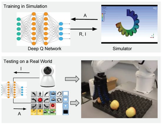 - Rusu, A.A.; Vecerik, M.; Rothörl, T.; Heess, N.; Pascanu, R.; Hadsell, R. Sim-to-Real Robot Learning from Pixels with Progressive Nets. arXiv 2016, arXiv:1610.04286. [Google Scholar]