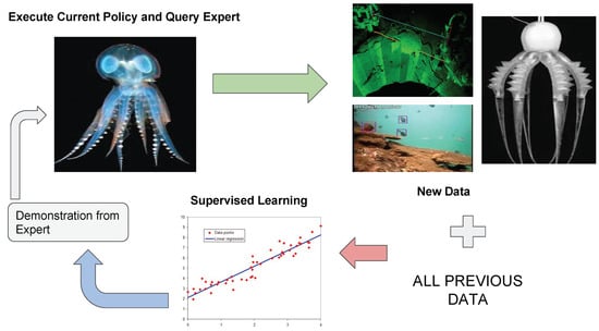 - Ross, S.; Gordon, G.; Bagnell, D. A reduction of imitation learning and structured prediction to no-regret online learning. In Proceedings of the Fourteenth International Conference on Artificial Intelligence and Statistics, Fort Lauderdale, FL, USA, 11–13 April 2011; pp. 627–635. [Google Scholar]