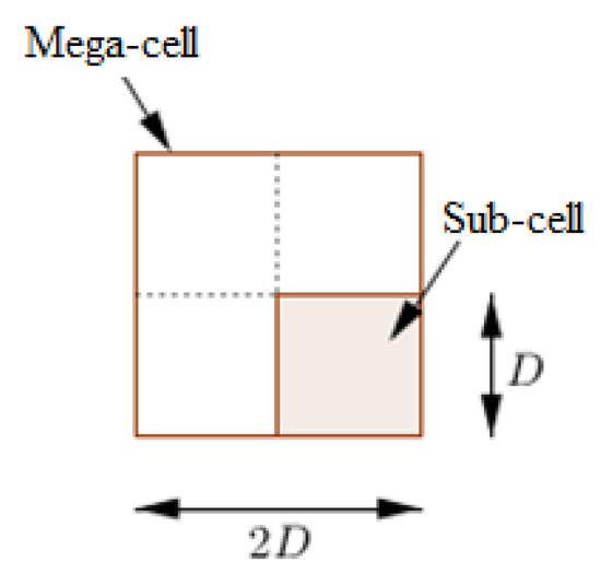 Similar to the STC algorithms, the grid division uses two cell types which are -sized sub-cells and -sized mega-cell (D is the size of the robot). Each mega-cell will contain 4 sub-cells inside and Figure 4 shows two types of cell.
