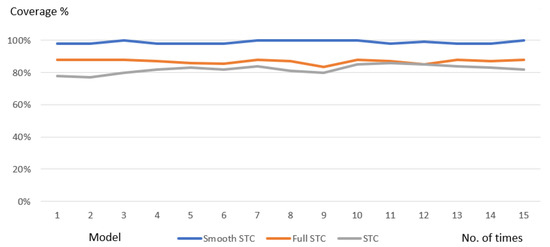 Coverage path of Smooth STC performance compared to the Full-STC and STC performance.