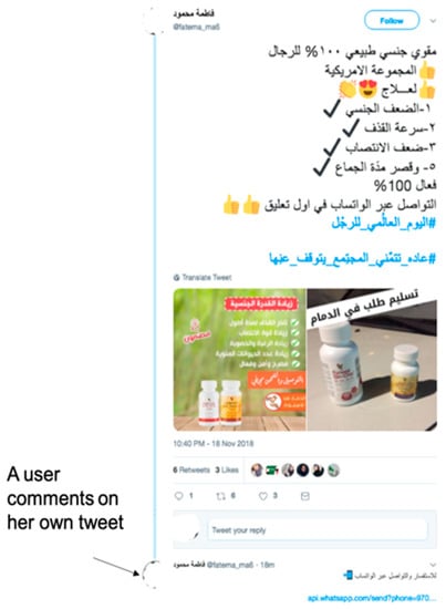 Different hypothetical attack scenarios against Twitter spam detectors are proposed. Attack tactics were formularized using the framework of the popular attack taxonomy presented in Refs. [32,33] that categorizes attacks along three axes: influence, security violations, and specificity. This framework was extended in Ref. [21] to derive the corresponding optimal attack strategy by modeling an adversary’s goal, knowledge, and capability. The adversary’s goals considered in this study are either to influence training or test data or to violate the system’s integrity, availability, or privacy. The adversary’s knowledge is considered to be perfect knowledge (white-box attack) and zero-knowledge (black-box attack). This ensures that both the worst-case and best-case scenarios are considered for an adversary when they attack spam detectors. The adversary’s capability is based on their desired goals. For example, if the goal is to influence the training data, the adversary must be capable of doing so. Examples of adversarial spam tweets were extracted from Arabic trending hashtags. The number of spam tweets using Arabic trending hashtags was found to be high, the reasons for which are beyond the scope of this study. However, it was found that there were very active spam campaigns spreading advertisements for untrustworthy drugs, such as weight loss drugs, Viagra, and hair treatment drugs, targeting Arabic-speaking users. The attack scenarios can be modeled as follows: