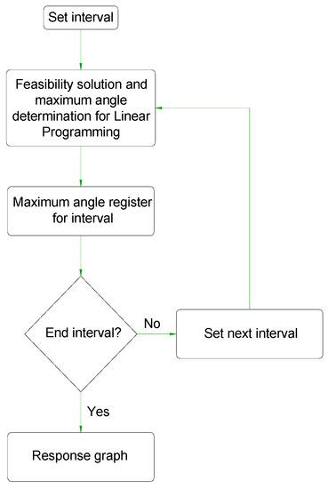 The feasibility that one or more system solutions will allow the positioning and orienting of the robot in each interval is determined by linear programming. The function to be minimized is tied to a group of restrictions, which are analyzed in the next section. These considerations were implemented using MATLAB, whose computational process is shown in Figure 3.