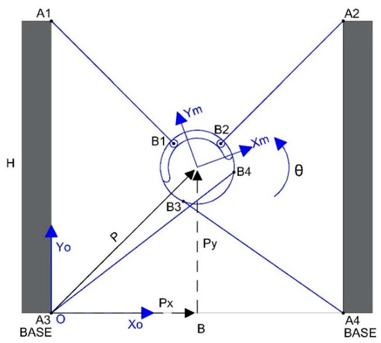 Hence, (Xo, Yo) and (Xm, Ym) represent the coordinates of the fixed and mobile platforms, respectively.