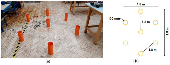 (a) The lab obstacle course, and (b) corresponding dimensions for this course.