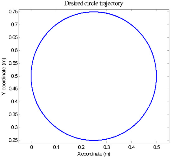 As reported in [40], a circular path is assigned to the end-effector as depicted in Figure 33. The desired motion trajectory in the Cartesian space is defined as [40]: