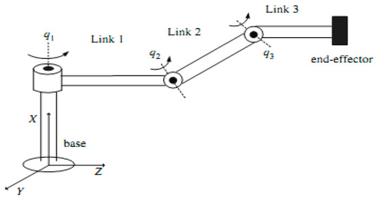 Three-link robot manipulator.