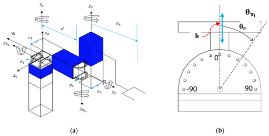 where, , for . The metamorphic parameters of the manipulator are embodied in the system of Equation (2).