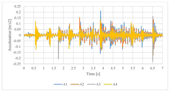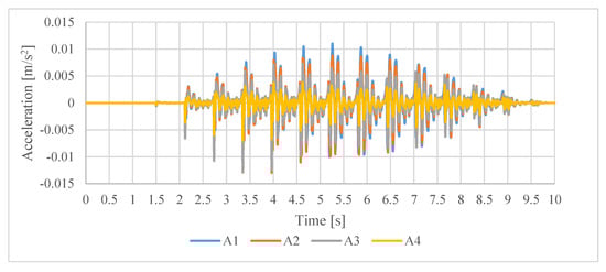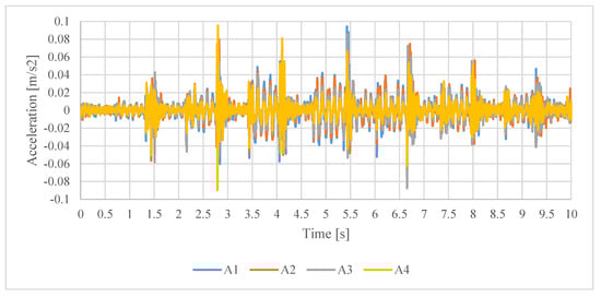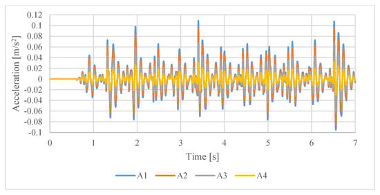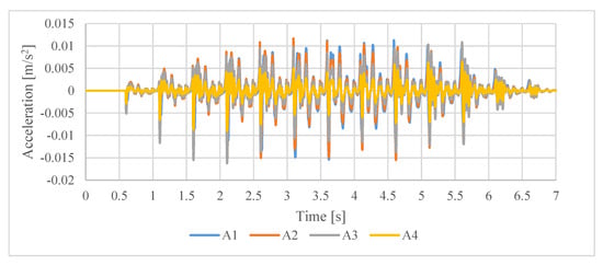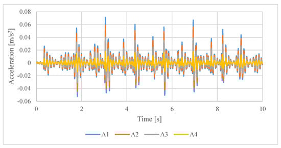 Measured accelerations at stations from A1 to A4 for Test 4.