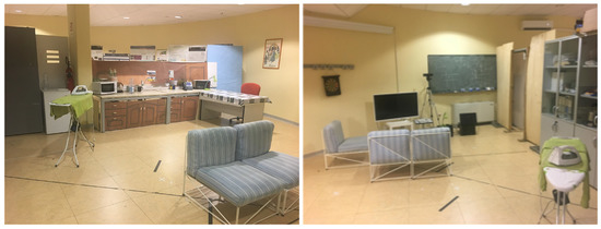 The robotic platform used in our experiments is the humanoid Pepper robot produced by Softbank Robotics. Tests were performed in a large laboratory area, where common home-furnishing has been used to simulate a home environment (see Figure 1). The idea was to put at ease the senior participants by trying to simulate a domestic environment in view of the evaluation of the realized robotic platform in in-house applications.