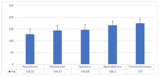 Figure 4 shows average global scores of the NEO-PI-3 personality factors. Table 1 reports the mean and standard deviation of the sub-factors for each personality dimension. The average of the Eyes test is 22.67 (range = 16–29; SD = 3.49) and the average of EQ is 45.14 (range = 35–61; SD = 8.44).
