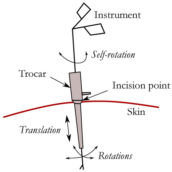 In the medical field, tele-operation systems are not designed to yield autonomous operation but to assist the expert by adding more security and accuracy to the medical operation. The proposed tele-operation system is dedicated for Minimally Invasive Surgery (MIS) performed through small incisions. The instruments in MIS are designed to enter into the patient body through tiny incision points by a trocar, see Figure 2. In this kind of medical intervention, motions of the instruments are limited to three rotations around the incision point and one translation within the instrument axis.