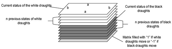 After calculating the data, we obtained 280 possible moves. This number is equal to the number of output neurons that get certain values as the result of the given field state classification. Regarding the state of the checkerboard, our algorithm takes into account not only the current state but also the previous states, dividing one state into two layers.