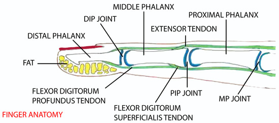- Getting the Finger. Available online: https://mddirect.org/tag/finger-anatomy/ (accessed on 30 September 2020).