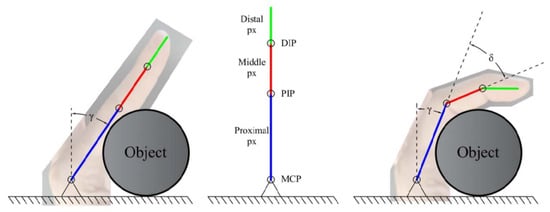- Pinching motion: the distal phalanx remains straight or rotates in counterclockwise direction; so, the fingertips of index and thumb are in front of each other. It results in an efficient grasp for thin objects like keys or papers (Figure 3).