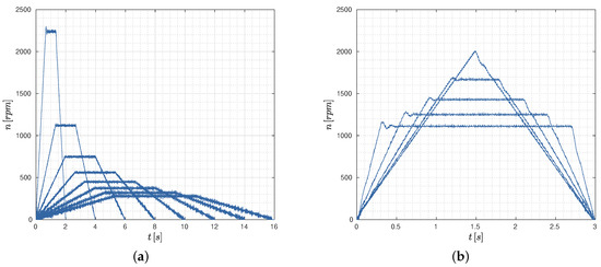 Examples of trajectory profiles considered in (a) Test T, and (b) Test . The speed profiles are directly measured by the servo-motors.