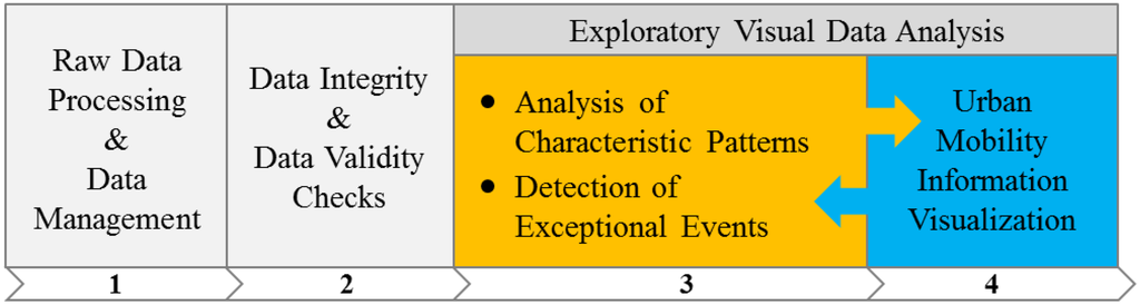 We applied a four-step analysis approach (Figure 3) that begins with the processing of raw mobile network traffic data and ends with the visualization of urban mobility information.