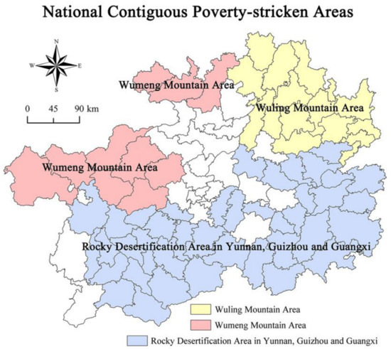 Distribution of national contiguous poverty-stricken areas of Guizhou Province.