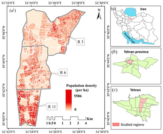 A case-study approach was adopted to gain a detailed understanding of the proposed framework. The dataset used is related to three districts of Tehran, Iran (Districts: 3, 6, and 11). These regions are representative of different quality of life levels, which are located in the northern, central, and southern parts of the city (See