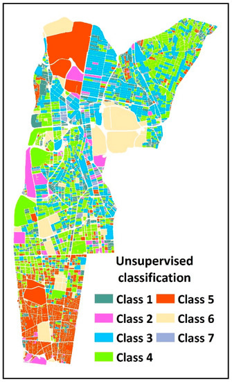 Figure 13 shows the results of the GetSpatialClassification operation applied to the geodemographic data of the study area. The aim is to classify statistical blocks into separate classes based on social and economic indicators. Due to the lack of training data, the K-NN classification algorithm was used. As a result, the most similar spatial features were separated from other features in the form of classes and are presented in