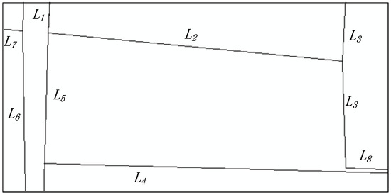 Based on Definition 2.3, there are six spatial intersection components between region A and line B in Figure 4, including four intersection-lines (l1, l2, l3, and l4) and two intersection-points (P1 and P2), as shown in Figure 4c. Among them, the intersection-lines l1, l2, and l3 are subdivided by the one-dimensional topological component L1 (Figure 4b). In addition, it should be noted that the intersection-line in Definition 2.3 contains boundaries; that is, their topologies are equal to a polyline with two endpoints shown in Figure 3. It should be noted that to simplify the expression, the term “intersection component” (e.g., “intersection-line” and “intersection-point”) used in this article refers specifically to the spatial intersection component (e.g., “spatial intersection-line” and “spatial intersection-point”) if there is no “topological” modifier.