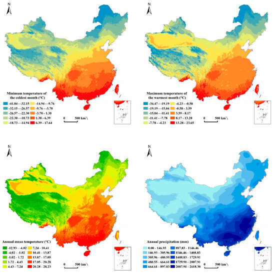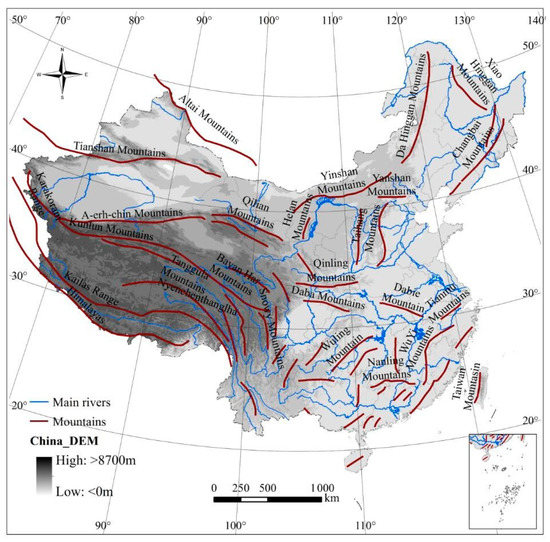 The study encompassed the entire area of China (9.6 million km2; 73°29′ east (E)–135°2′ E, 3°31′ north (N)–53°33′ N), see Figure 1. From east to west, the country extends about 5200 km; from north to south, it spans about 5500 km. The country is characterized by diverse terrain, different climate types, and complex natural conditions. It is the diversity of habitat environments that leads to incredible species abundance. China is one of the countries with the richest biodiversity globally [37]. The geological environment has been subject to events, including tectonic movement and the uplifting of the Qinghai–Tibetan Plateau, which has resulted in clear regional differences to the natural environment and has influenced the geographical pattern in the distribution of animals [38].