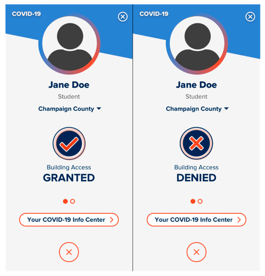 Second, if public health authorities aim to monitor people’s self-quarantine, monitoring methods based on random calling or travel certificates (M5 and M8) seem to be good starting points in the U.S. and other similar countries. For instance, some state governments in the U.S. have started monitoring the self-quarantine of people (M5) who enter their states from certain other states that are experiencing a surge in new COVID-19 cases [18]. Another example of M8 is the “Safer Illinois App” that has been developed by the University of Illinois [42]. To enter the university building, university members (e.g., faculty/staff and students) need to show that they have valid building access (Figure 5). A member’s valid building access is granted only when he/she has a recent negative COVID-19 test result [42]. By utilizing this method, the University of Illinois could successfully mitigate the spread of the COVID-19 virus within the university community. These examples thus imply that using an approach that is similar to M5 and M8 may work well in the U.S. and other similar countries. However, our survey results indicate that only about 50% of people consider these methods acceptable, suggesting a relatively lower acceptance rate for them. Thus, more public health policy efforts, such as transparent communication with citizens, education, and campaigns, are needed to address people’s privacy concerns. Especially, efforts should be made to better convince people about the need for and benefits of implementing self-quarantine monitoring measures.