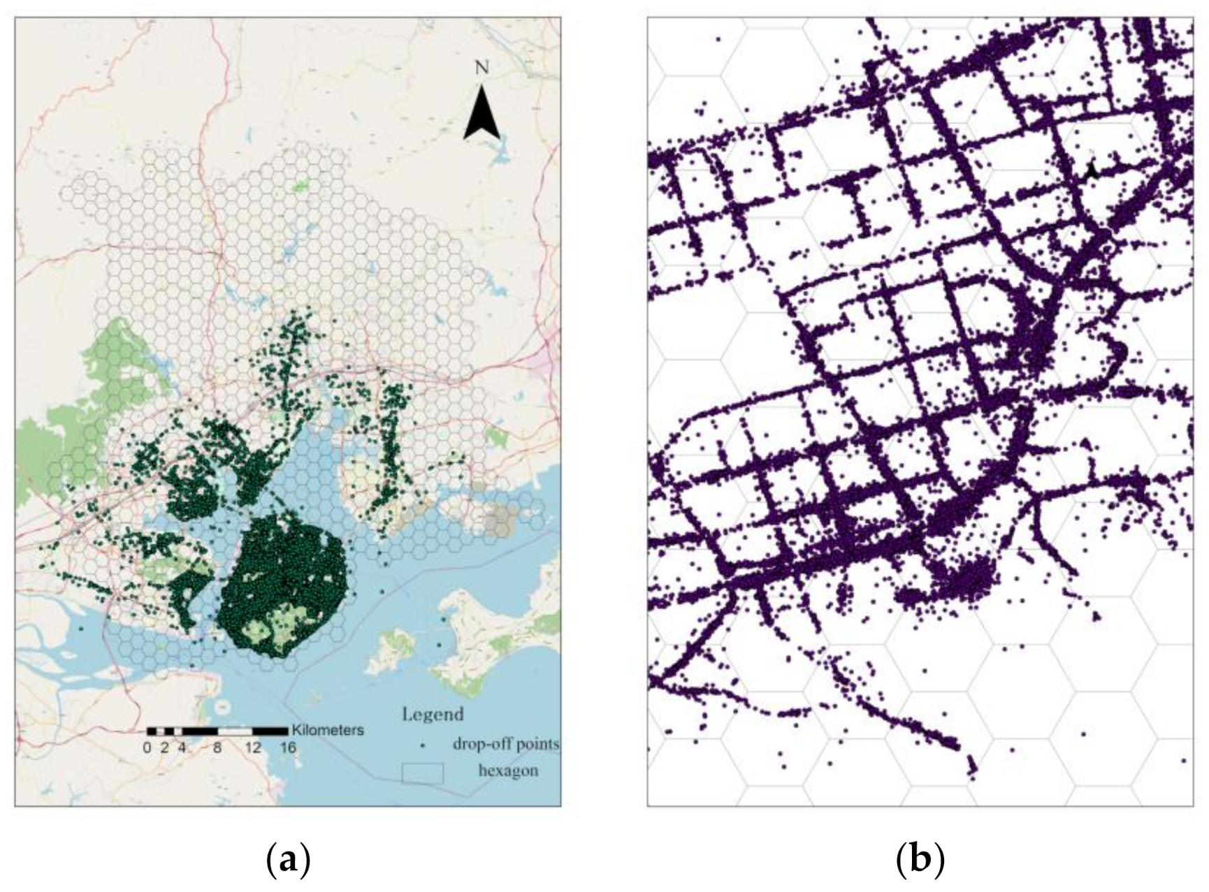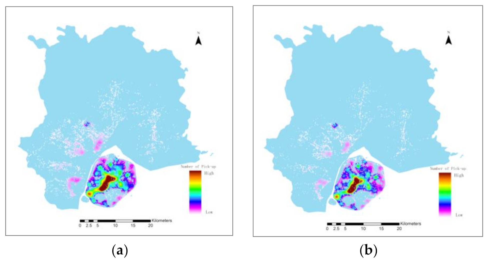 - Liu, L.; Andris, C.; Ratti, C. Uncovering cabdrivers’ behavior patterns from their digital traces. Comput. Environ. Urban Syst. 2010, 34, 541–548. [Google Scholar] [CrossRef]