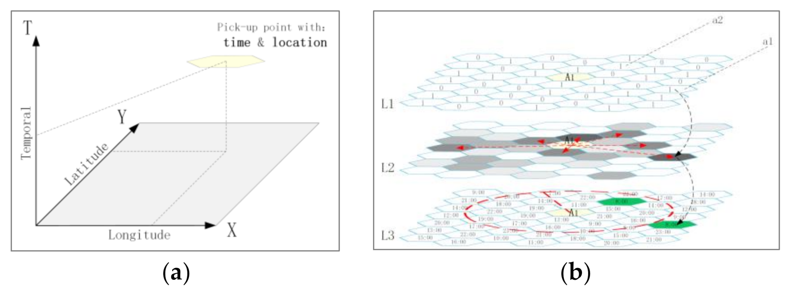 - Tang, J.; Jiang, H.; Li, Z.; Li, M.; Liu, F.; Wang, Y. A Two-Layer Model for Taxi Customer Searching Behaviors Using GPS Trajectory Data. IEEE Trans. Intell. Transp. Syst. 2016, 17, 3318–3324. [Google Scholar] [CrossRef]