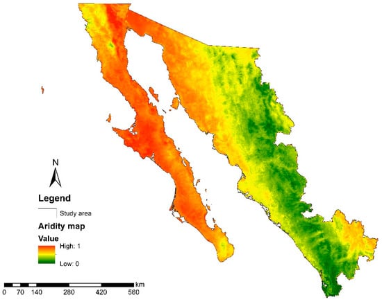 The results obtained from the geospatial model for arid zones applied in this study provide useful information on the different levels of aridity in the study region. The variables used proved to be ideal for integration into the aridity model at the regional level and were extrapolated to the global level.