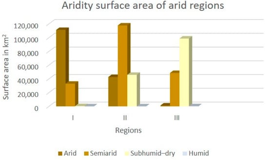 The results obtained with the aridity vulnerability map were classified based on the classification proposed by the UNEP [,], which defines arid regions in five classes as shown in Table 5.