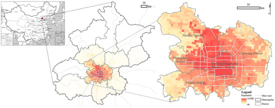 Location and population distribution of Central Beijing.
