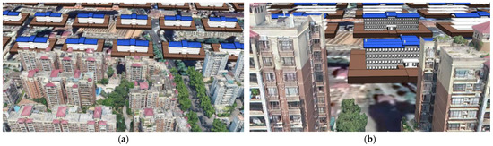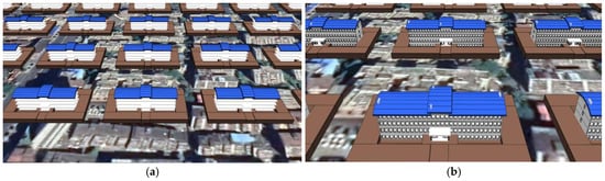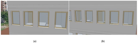 BIM models for the cyan area: (a) LOD2 models; (b) LOD3 models.