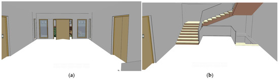 The visualization of indoor GIS scenes mainly includes two cases: (1) the outdoor space is visible from the viewpoint and (2) the outdoor space is not visible from the viewpoint. These scenarios were compared using the Liu et al. (2016) method (Figure 16) and our proposed method (Figure 17).