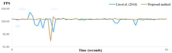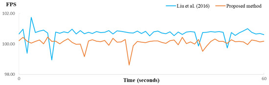 As shown in Figure 18, the average FPS over 1 min for the Liu et al. (2016) method and the proposed method were similar (~100 FPS).