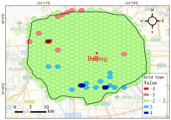 Similarly, grids with low accessibility and large population can be identified according to result ≤−3, as shown in the red grid in Figure 14, in which Grid 357 is the most prominent. Due to the lower accessibility and the larger population of these grids, it is suggested that the government should take some traffic demand management measures, such as increasing bus stations and optimizing subway network to improve the low-cost accessibility of the grid to meet the commuting demand.