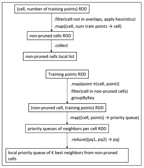 - Aghbari, Z.A.; Ismail, T.; Kamel, I. SparkNN: A Distributed In-Memory Data Partitioning for KNN Queries on Big Spatial Data. Data Sci. J. 2020, 19, 35. [Google Scholar] [CrossRef]