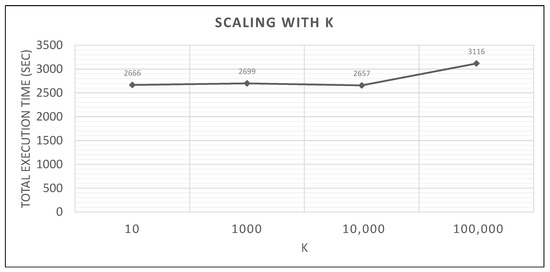 In Figure 29, we see how the algorithm scales on Spark with much bigger values of K.